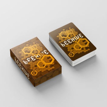 A pack of playing cards and a card box that I designed to represent a beehive. The suits and front/back of cards were illustrated with Adobe Illustrator I used Adobe inDesign to design the package and card layout.