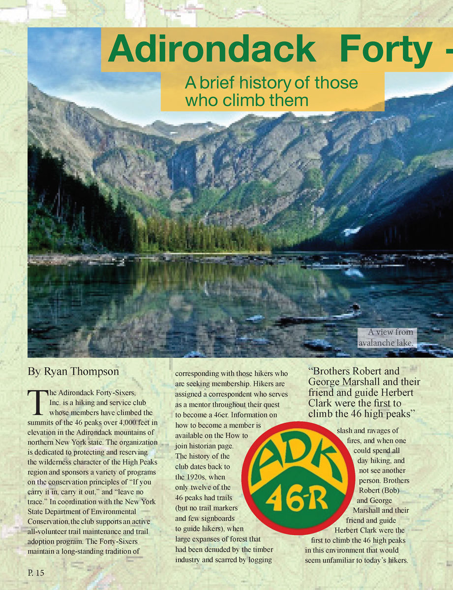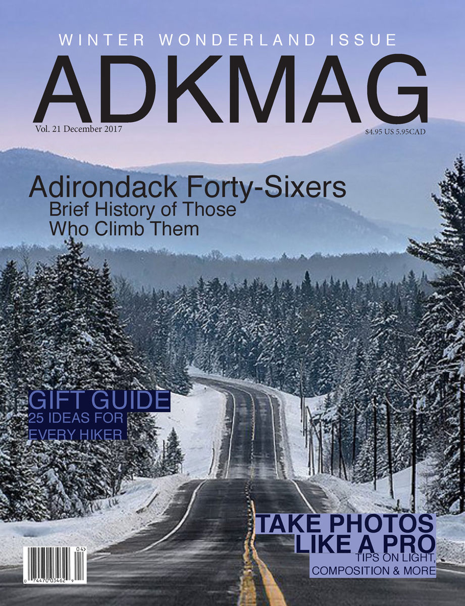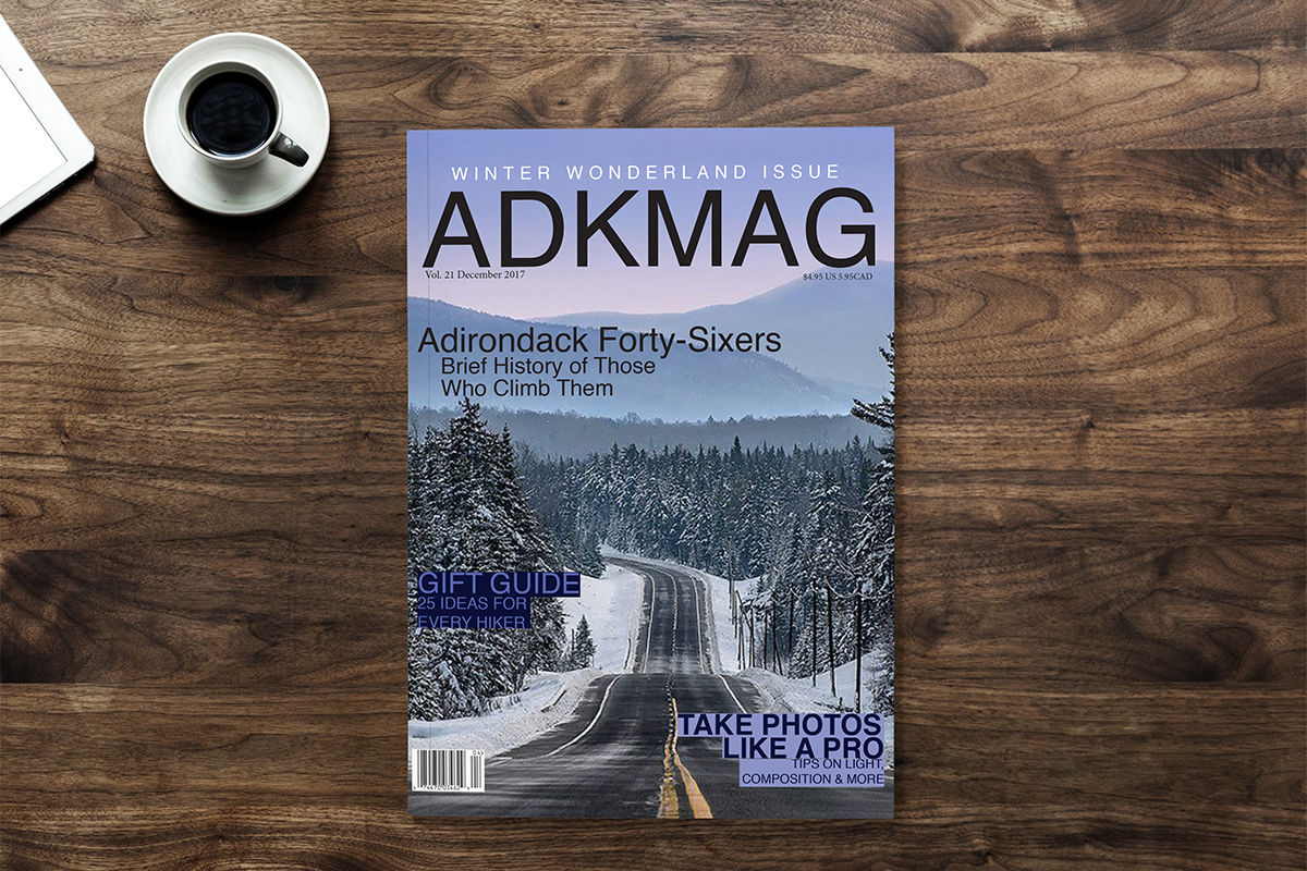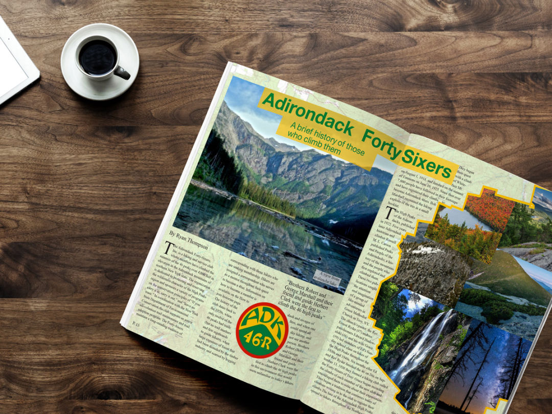 This cover and inside spread was designed by myself. I wanted to represent the different types of challenges that the Adirondack Mountains possess to people. I wanted to highlight the people that explore the Adirondacks. I aspired to focus on the incredible humans that overcome climbing all 46 high peaks.
