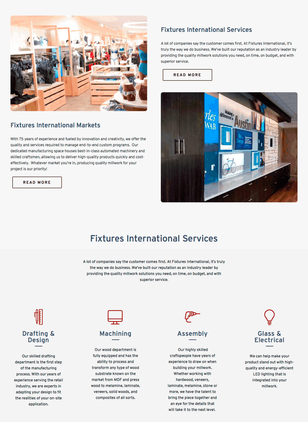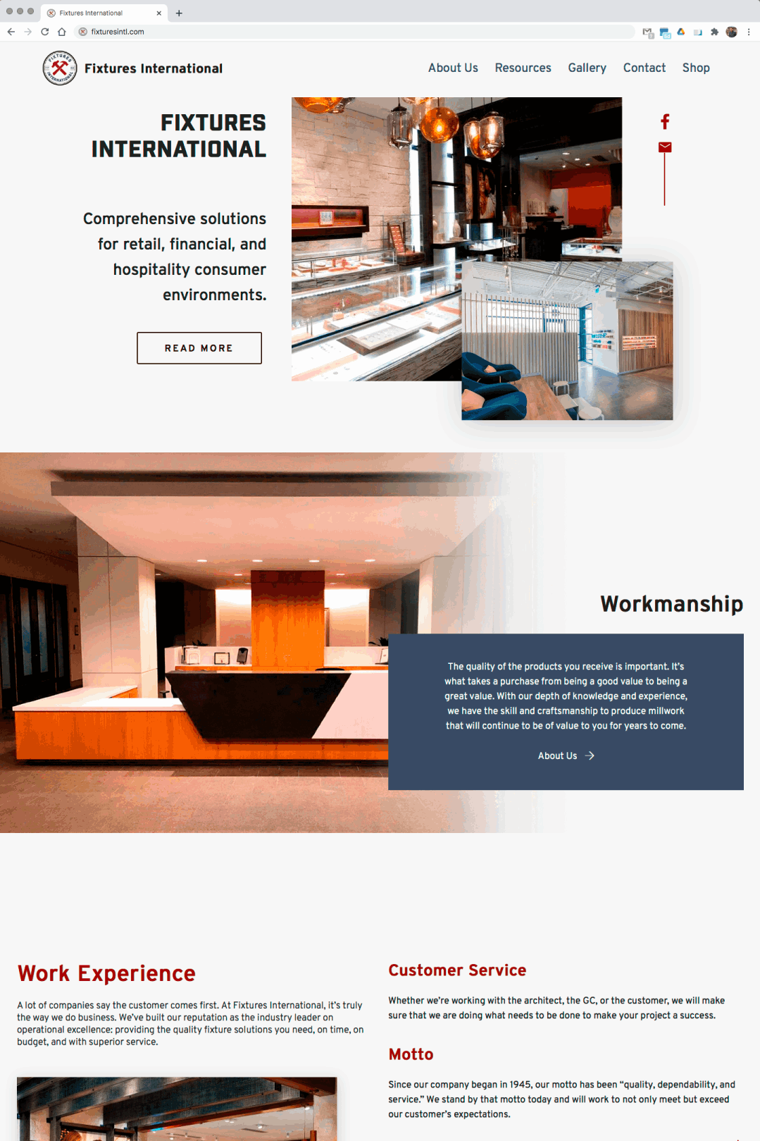 Fixtures International is a custom store fixture supplier from Austin, Texas, that was looking for someone to redesign their outdated website and eCommerce site. They wanted something with a fresh new design that showcased their recent works.