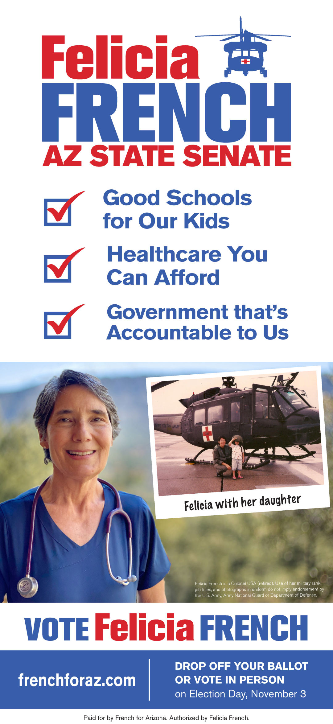I designed a custom logo, digital and print newspaper ads, campaign swag product design, GIFs, and a billboard for an Arizona political campaign. Additionally, I assisted the communications team with the production of compelling photographs and campaign videos.