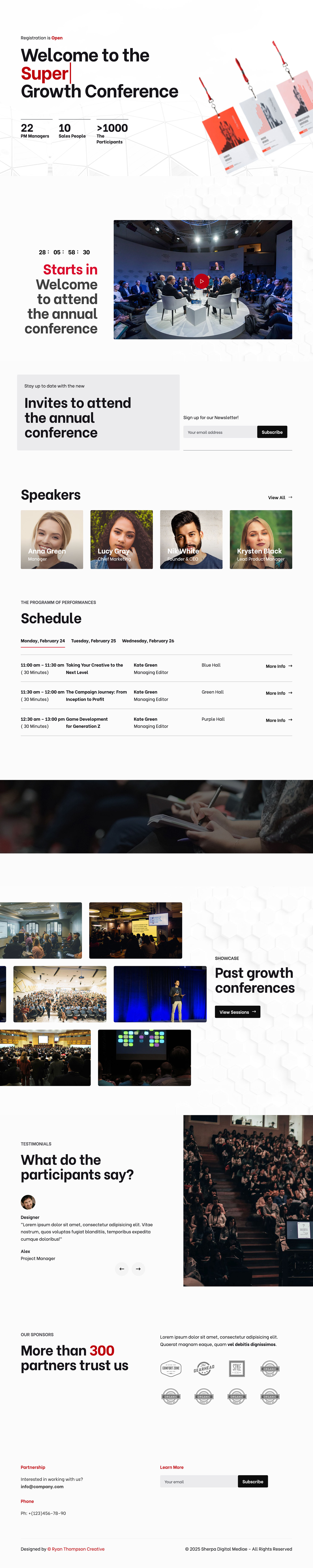 I designed and fully developed a custom single page webpage for a futuristic growth conference. The page fully explains the conference, the speakers, and the schedule for the conference. I fully developed this site using HTML/CSS, and Bootstrap.