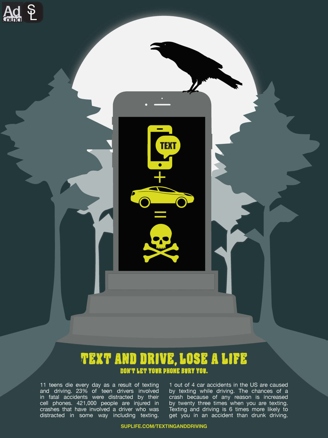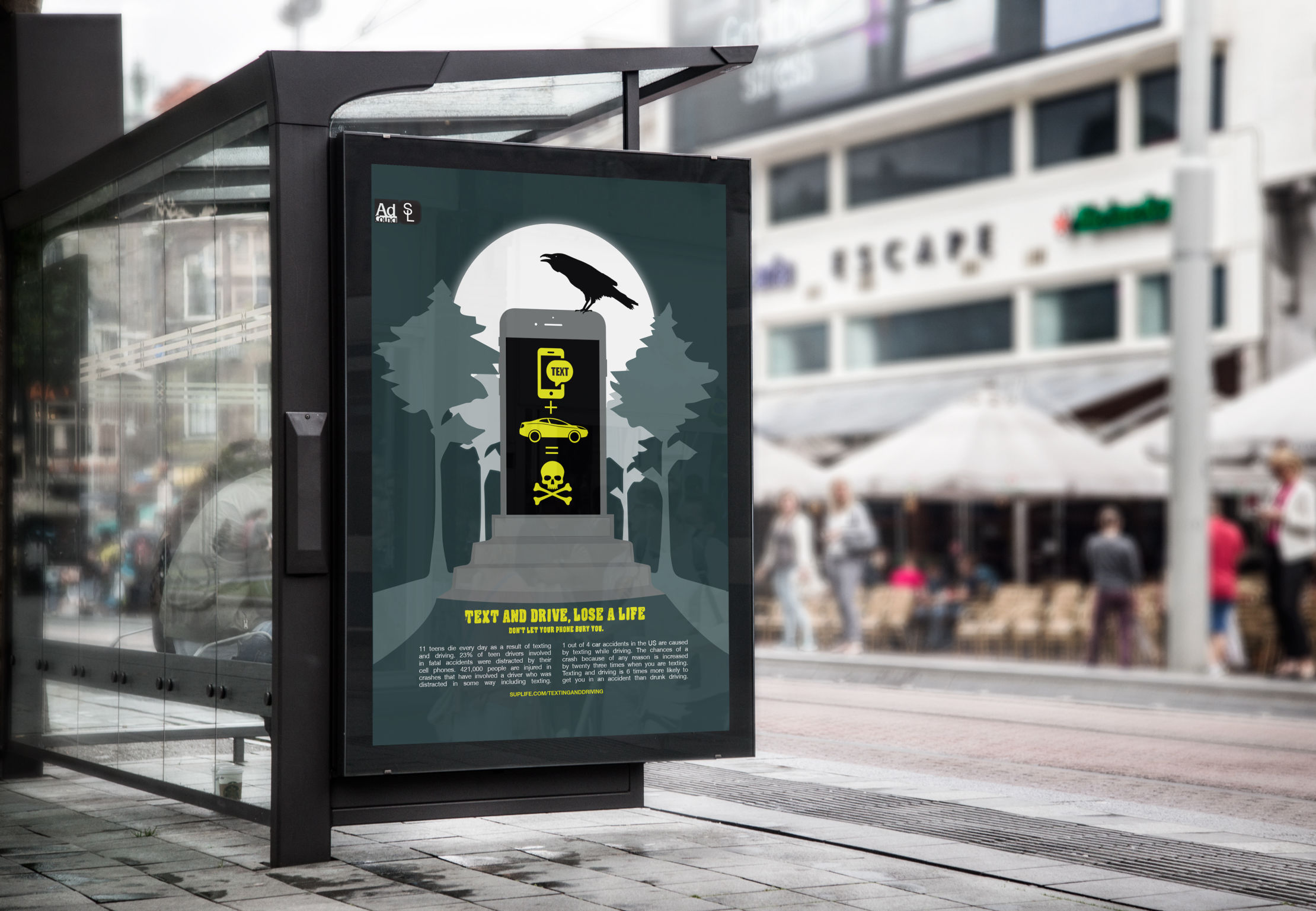 For this project, I needed to create a poster-sized ad for the effects that texting and driving could have on your life and the lives around you. I wanted to create something that would scare people from texting and driving. I came up with a graphic and made a cellphone that represented a gravestone. I used the screen to display the message that if you would take the risk of texting while driving, you might be the one in the grave because of it.